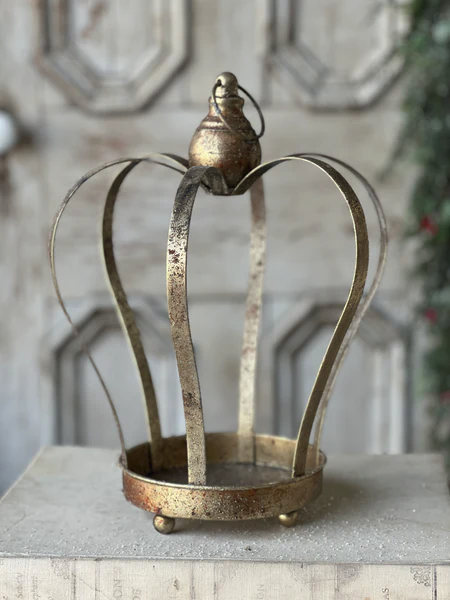 The crown-shaped lantern brings a royal touch to any display thanks to its majestic silhouette and charming distressed gold finish. It looks stunning with a candle and a wreath, or simply paired with a sprigs of greenery for a whimsical vibe.