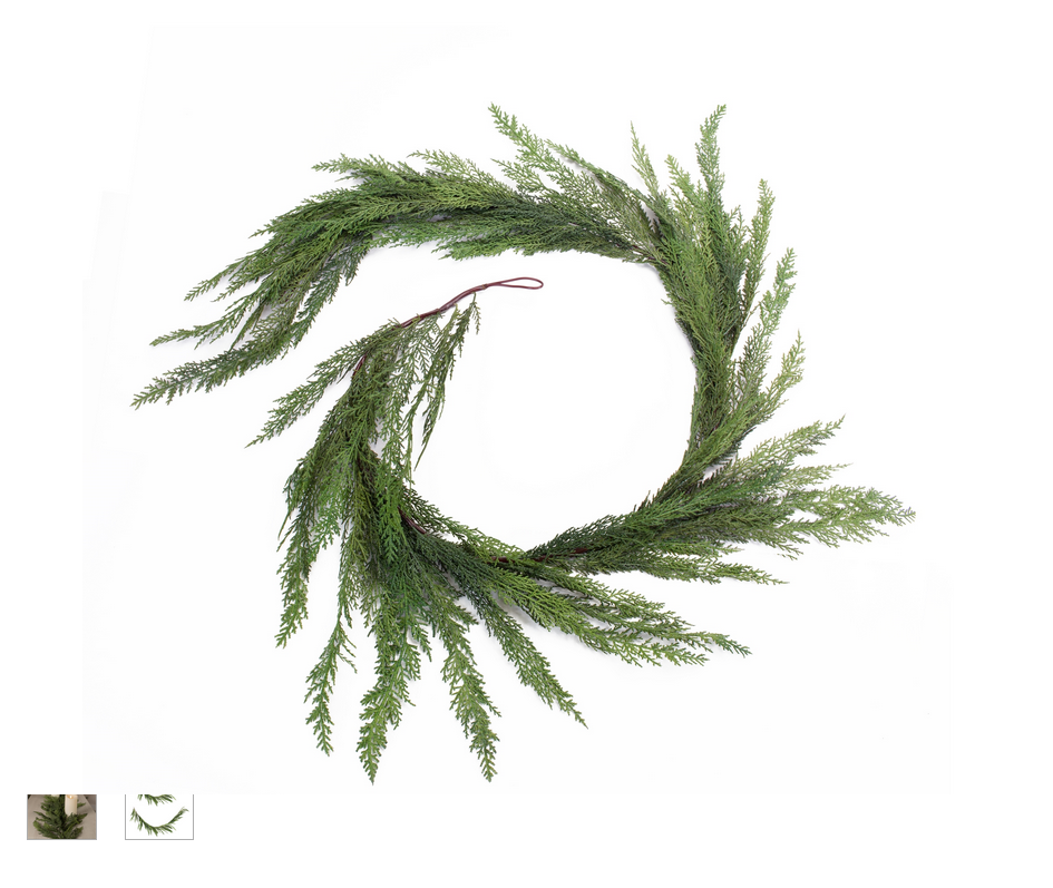 Bring a touch of elegance to your space with this gorgeous drapey cedar garland. Ideal for adorning a mantle or cascading down the center of your table, its lush greenery adds a fresh, natural charm that effortlessly elevates any room’s decor. Let the festive fun begin!