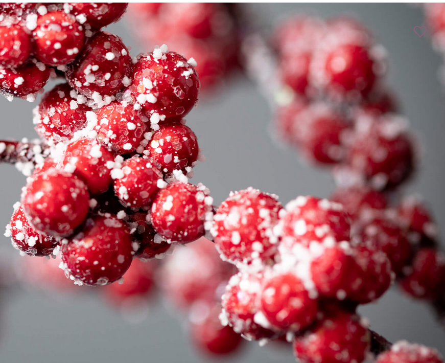 Decorate your home this holiday with this beautiful frosted red berry spray. With bright red, lush berry clusters covered in an icy frost, this spray will be the perfect addition to any holiday arrangement.