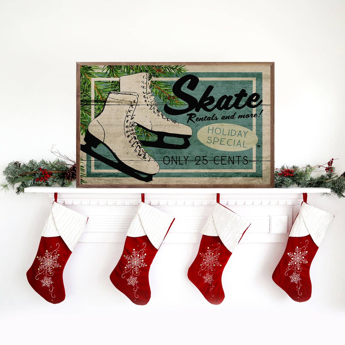 Add a touch of vintage charm to your holiday decor with this playful Skate Rentals sign. Featuring classic ice skates and a nostalgic skate rental ad, it brings a fun, retro vibe that’s perfect for celebrating the season.